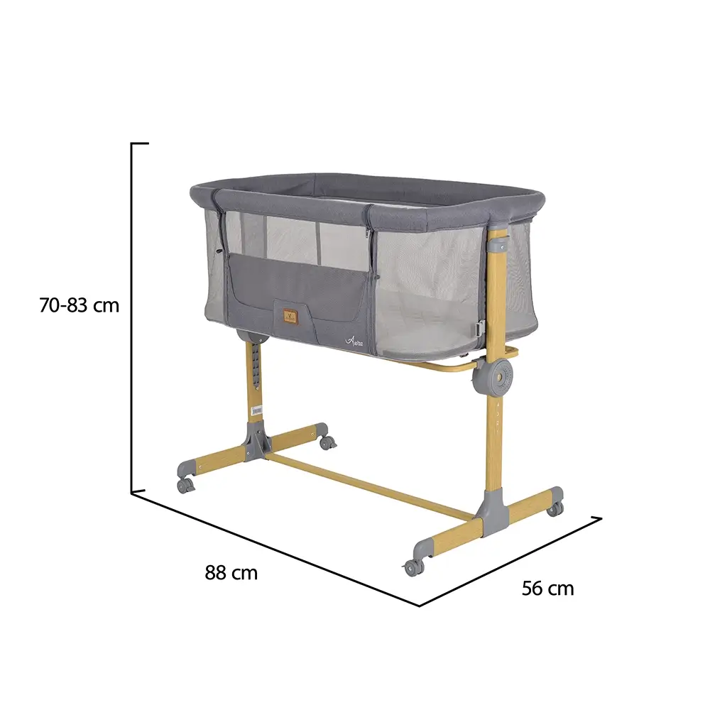 Kolevka Aura napravljena je tako da bebi obezbedi siguran i miran san, a roditeljima više mira i praktičnosti. Pogodna je za bebe od rođenja do 9 kg – kao samostalni krevetac ili uz roditeljski krevet za zajedničko spavanje. Podesiva visina lako se uklapa uz većinu kreveta, a antirefluks funkcija pomaže bebi da lakše diše i spava mirnije. Zahvaljujući mrežastim stranicama, cirkulacija vazduha je uvek dobra, a beba vam je stalno na oku. Kolevka ima točkiće sa kočnicama pa se jednostavno pomera, a uz nju dolazi i mekani dušek sa navlakom koja se lako održava. Aura je izrađena od kvalitetnih materijala i usklađena sa evropskim standardima, te je sigurno rešenje za prve mesece života.
